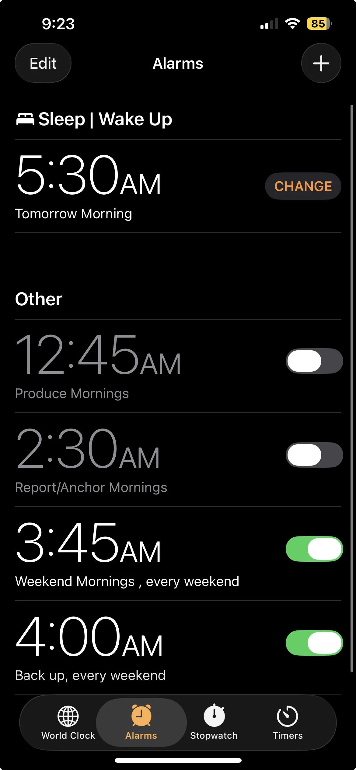 I started my day early with my alarm clock going on at 5:30, even on days off, I don’t sleep in. Here’s a look at all the the different times I wake up depending on my schedule.