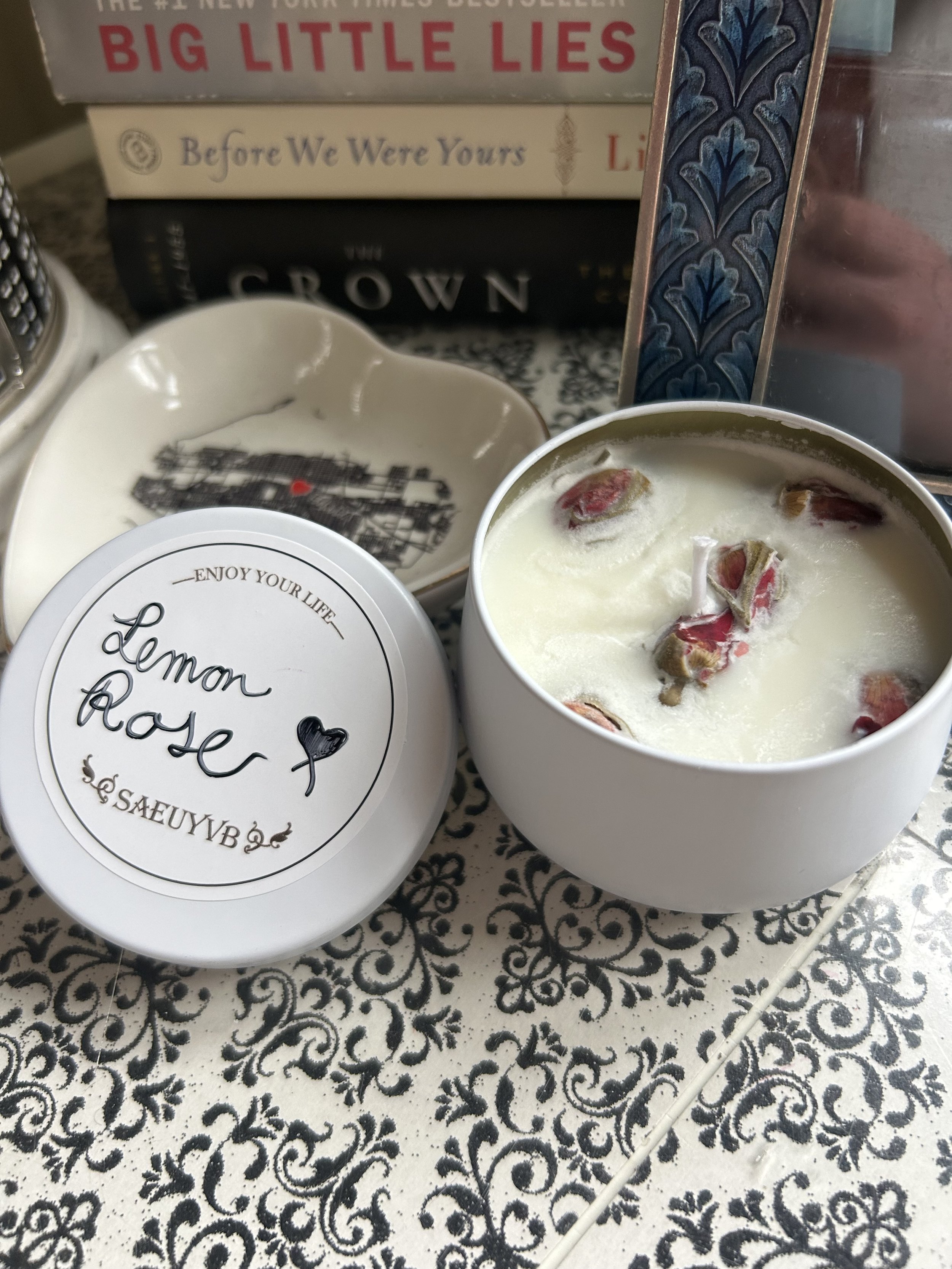 New Candle- I have been burning this new candle that I made myself at a Bachelorette party. I have been trying to get into the habit of using what I have instead of buying new. I LOVE candles and always get them as gifts, which I love. I was at a Bachelorette party a few months back and one of the activities was making your own candles. There were so many different scents to choose from to make. I opted for rose and lemon, such a sweet smelling candle. I love it. It’s the perfect spring scent.